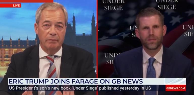 President Donald Trump’s son Eric went on British GB News and emphasized the seriousness of the free speech crisis in the U.K., comparing it to the previous American administration’s censorship cartel.