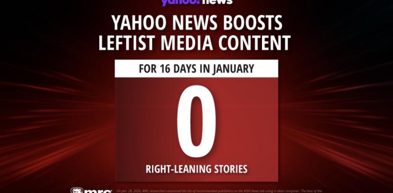 Methodology: During the time period Jan. 1 - Jan. 11, 2026, MRC researchers examined the top 20 AllSides-rated news stories featured on Yahoo News each day at approximately 10:00 AM ET and the top 20 AllSides-rated news stories between Jan. 12 - Jan. 31, 2026 at approximately 8:30 AM ET. MRC researchers used the AllSides media bias ratings, which categorize an outlet as “left,” “lean left,” “center,” “lean right” or “right” to determine the overall bias presented by Yahoo News and analyzed the results.