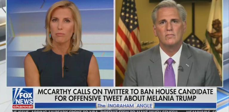 McCarthy replied, “That is why he is saying it. And this is inappropriate on any platform, to say about a First Lady, this First Lady or any other First Lady. And Twitter is treating people much different. You look at what they did to conservatives. They shadowbanned them. And when you shadowban somebody, everything you put up on Twitter is invisible except to yourself. And you know what they did to the RNC chair, Ronna McDaniel? They shadowbanned her. Congressman Devin Nunes, they shadowbanned him. Now they just said oh, it was a glitch, it was an algorithm. But there was not one of the 78 Democratic progressive liberal members who ever got shadowbanned. They are going after conservative speech.”