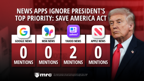 The suppression of the SAVE America Act isn’t limited to broadcast networks. MRC Free Speech America’s review found that a similar pattern continued on the Big Four News Apps, where coverage was either completely absent or negative.