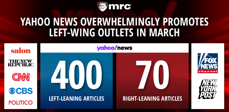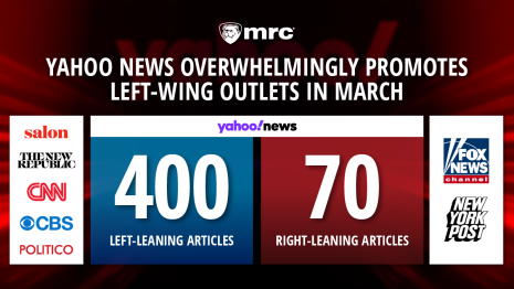 Methodology: During the time period Mar. 1 - 31, 2026, MRC researchers examined the top 20 stories featured on Yahoo News each day at approximately 8:30 AM ET. MRC researchers used the AllSides media bias ratings, which categorize an outlet as “left,” “lean left,” “center,” “lean right” or “right” to determine the overall bias presented by Yahoo News and analyzed the results.