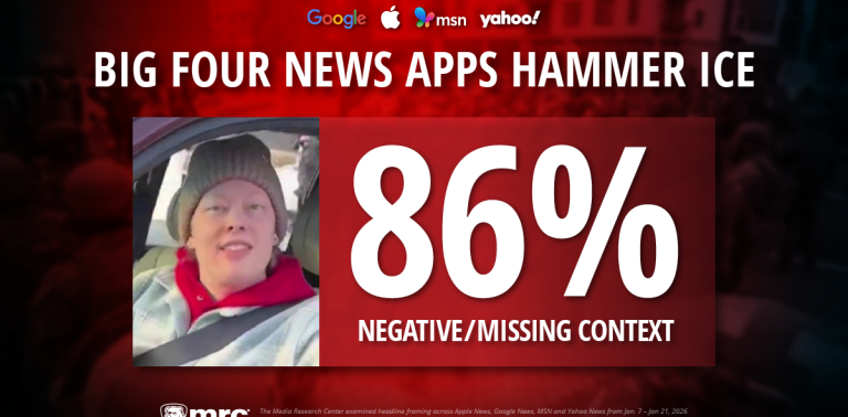 Methodology: The Media Research Center examined headline framing across Apple News, Google News, MSN and Yahoo News to assess how the Big Four News Apps presented coverage of Immigration and Customs Enforcement activity and related developments in Minnesota.