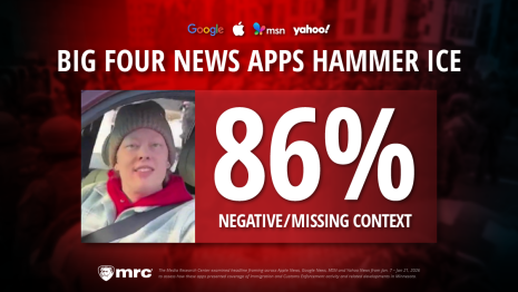 Across the four major news apps, MRC found a single dominant narrative: coverage framed Trump’s administration and ICE as responsible for turmoil in Minnesota, often omitting key context or alternative perspectives.