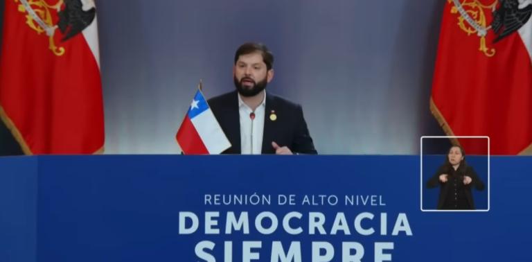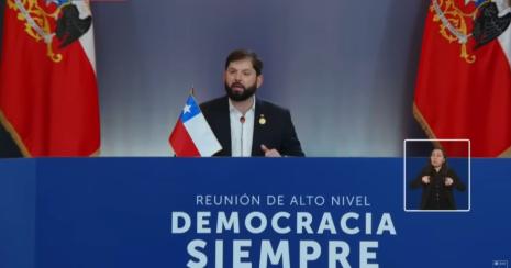 Brazil President Luiz Inacio Lula da Silva, Chile President Gabriel Boric, Colombia President Gustavo Petro, Uruguay President Yamandú Orsi and Spain Prime Minister Pedro Sanchez spoke at a “Democracy Always” conference in Chile on Monday.