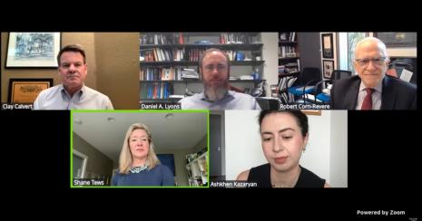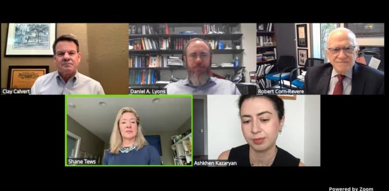 Corn-Revere was not alone, however. The other panelists also went after Carr. Kazaryan warned FCC and FTC employees that they were destroying democracy, leading Calvert to commend her wild claim as a “great way to close this conversation.” Meanwhile, Lyons claimed that Carr had used “New Jersey mob language” in his criticisms of Kimmel.