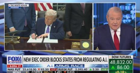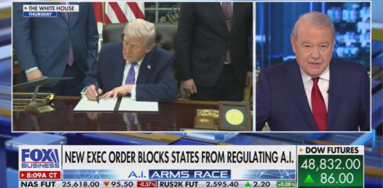 Trump condemned woke, anti-free-speech state efforts targeting AI in an executive order, “Ensuring a National Policy Framework for Artificial Intelligence.” The order directs a new AI task force to identify and challenge stifling, and anti-free speech, state laws, and restricts federal broadband funding for states that enact them. It also urges Congress to establish a national AI regulatory framework rather than a state-by-state patchwork.