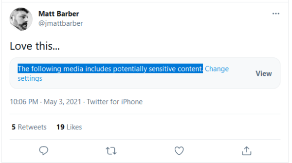 Twitter places sensitive content filter over Christian message: Matt Barber, a conservative author, cultural analyst and syndicated columnist tweeted a photo of the back of a semi-truck that has a Christian message attached to it. The message reads "Blood donor saved my life... His name is Jesus Christ." Twitter placed a sensitive content filter over the quote forcing users to click through the interstitial to view the graphic. Not only do such filters give the impression of violent or obscene content, but similar filters have been shown to reduce user interaction with content.