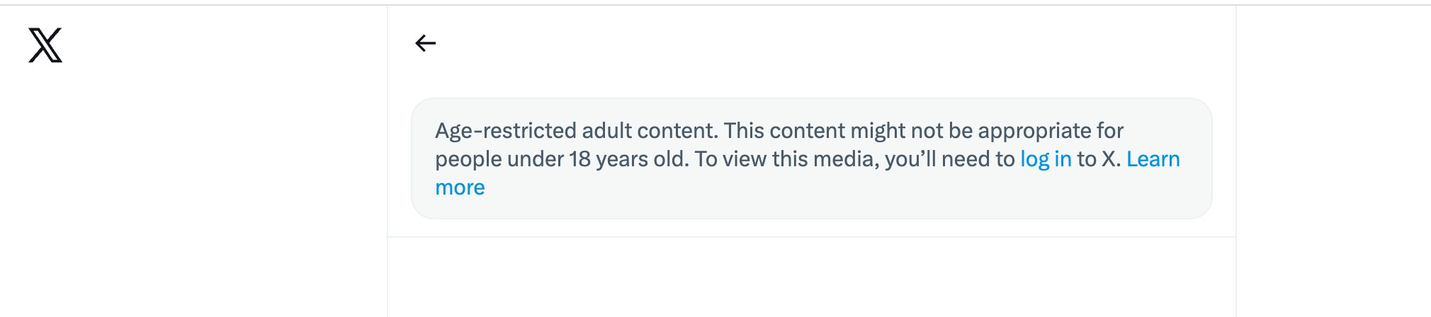 The message that X shows to users not logged into an age-verified account claims that the documentary contains “Age-restricted adult content,” further explaining that “[t]his content might not be appropriate for people under 18 years old. To view this media, you’ll need to log in to X.” spiked noted that the documentary “has zero age-inappropriate content in it,” claiming that filmmakers “even bleeped interviewee Allison Pearson’s judiciously used f-bomb just to be on the safe side. But no dice.”