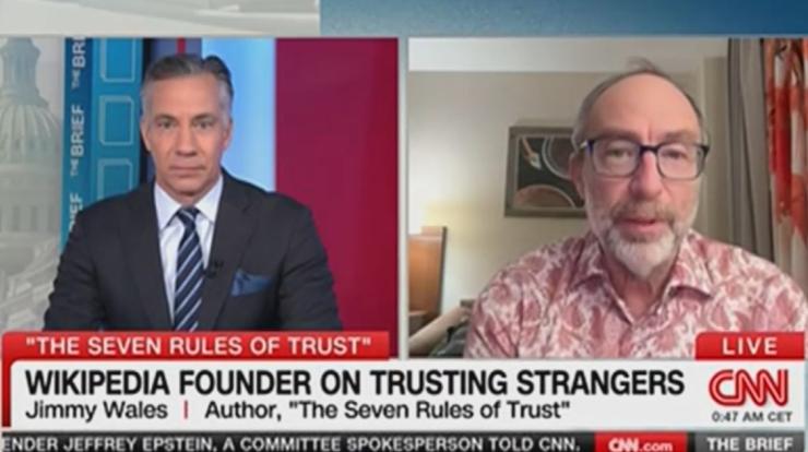 Wikipedia co-founder Jimmy Wales denied that the online encyclopedia has banned right-leaning sources, only to reference an example of that practice in the same discussion.