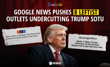 Google News promoted only left-leaning outlets’ coverage of President Trump’s State of the Union, according to an MRC review. Eight of nine featured articles were from liberal sources, with none from right-leaning media. The selection highlighted…