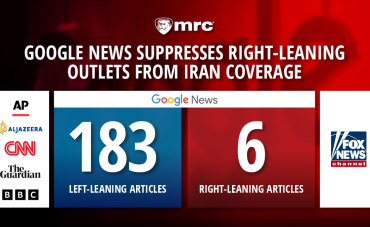Google News all but excluded right-leaning news outlets from coverage of the U.S.-Israel war with Iran, with 183 left-leaning stories to just six right-leaning ones.